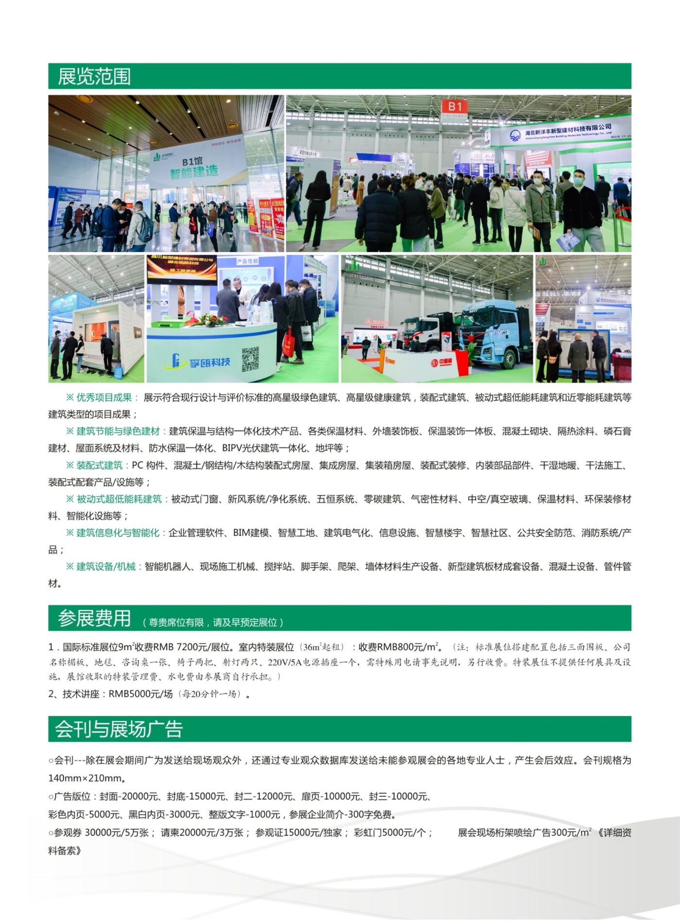 2.建筑节能与绿色建材。建筑保温与结构一体化技术产品、各类保温材料、外墙装饰板、保温装饰一体板、混凝土砌块、隔热涂料、磷石膏建材、屋面系统及材料、防水保温一体化、BIPV光伏建筑一体化、地坪等;