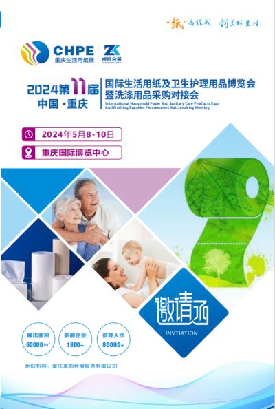 2024第十一届重庆国际生活用纸及卫生护理用品博览会 暨洗涤用品采购对接会 时间:2024年5月8-10日 地点:重庆国际博览中心